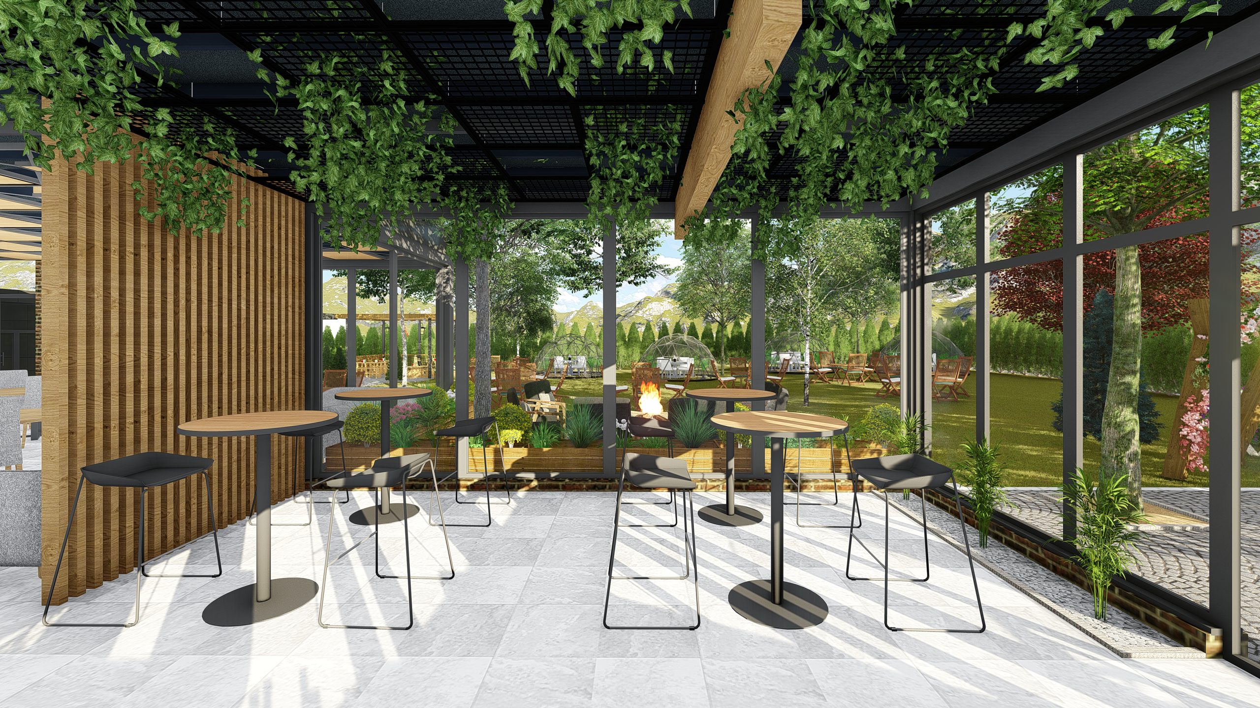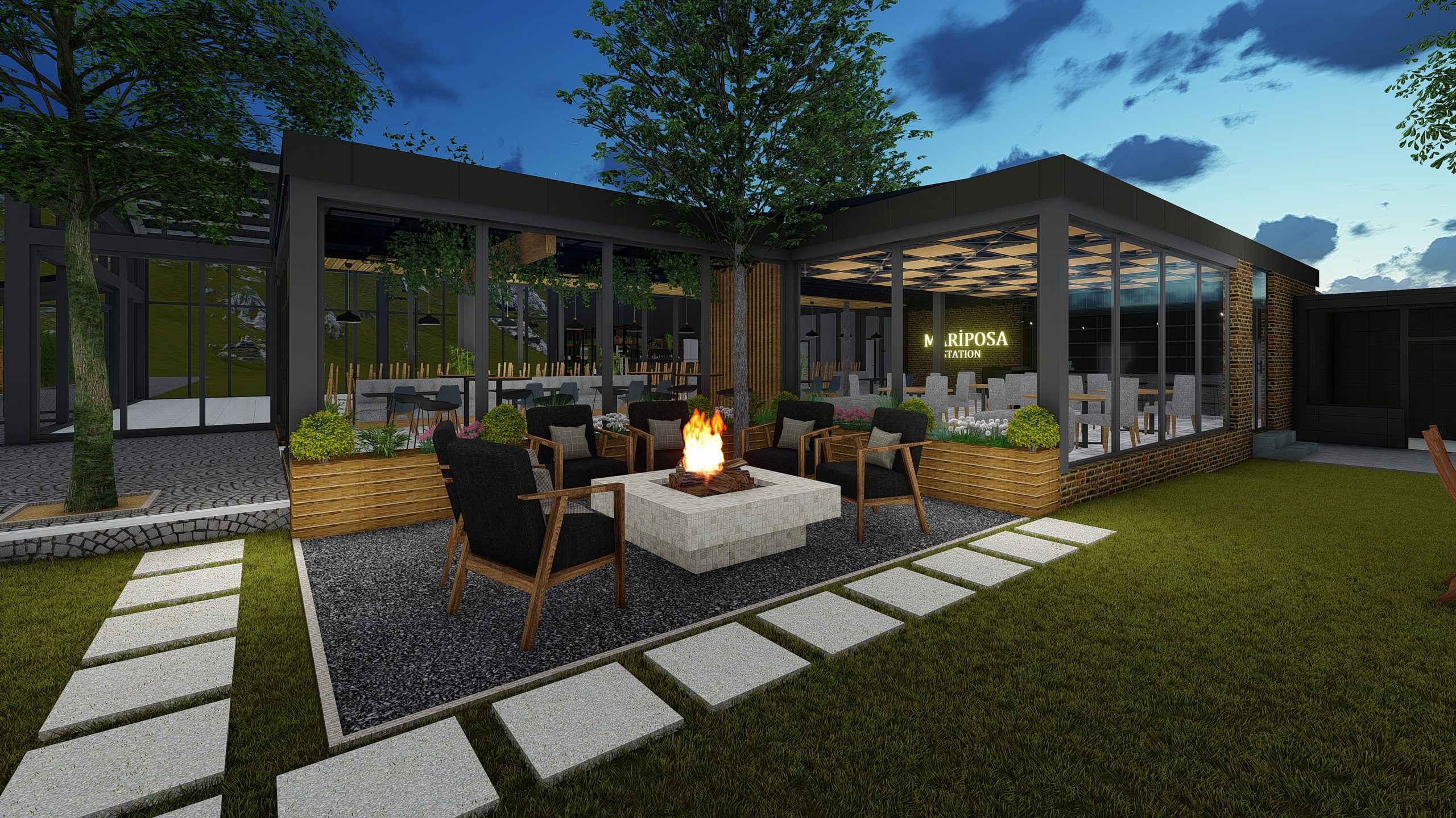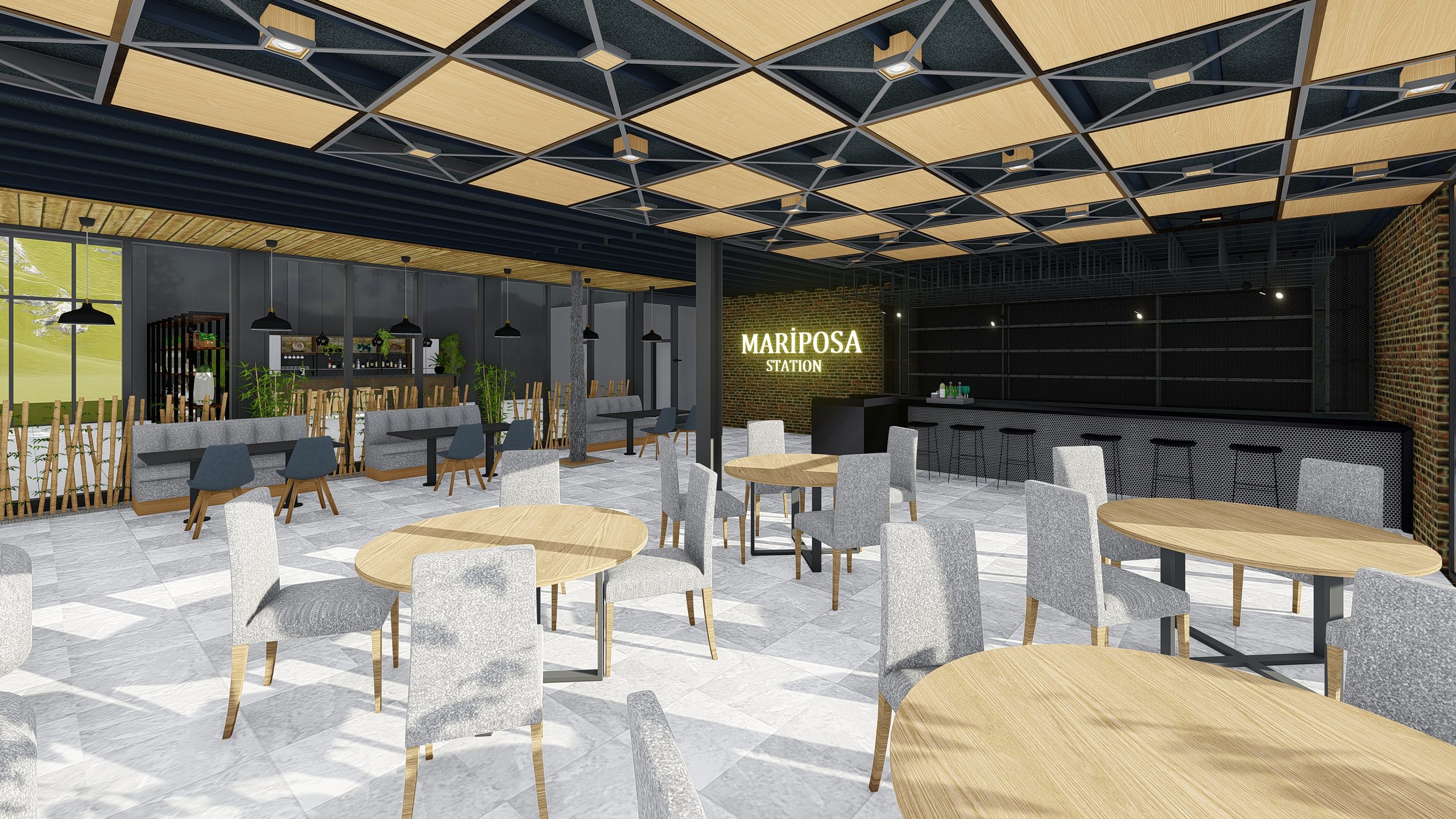Mariposa Station Peyzaj Tasarımı Projesi, doğa ile iç içe, rahatlatıcı ve estetik açıdan tatmin edici bir kafe deneyimi sunmak üzere tasarlanmıştır.